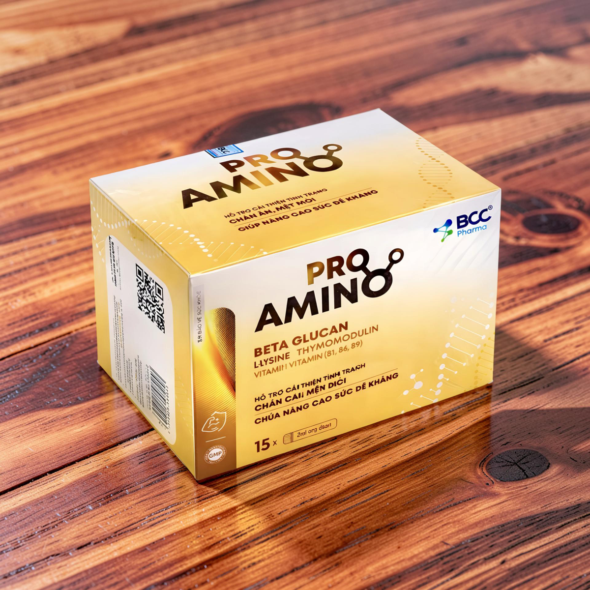 Nguyên liệu Super Amino do BCC sản xuất - nguyên liệu đạm thủy phân để sản xuất sản phẩm PROAMINO cho thấy có tổng số 18 axit amin, trong đó có 8 axit amin thiết yếu bao gồm: Histidine, Methionine, Isoleucine, Leucine, Lysine, Phenylalanine, Threonine, Valine.